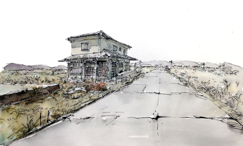 我比較喜歡用素描紙畫鋼筆淡彩,素描紙本身就是有些發(fā)黃發(fā)灰的,而且比較喜歡光滑沒有紋理的紙張。