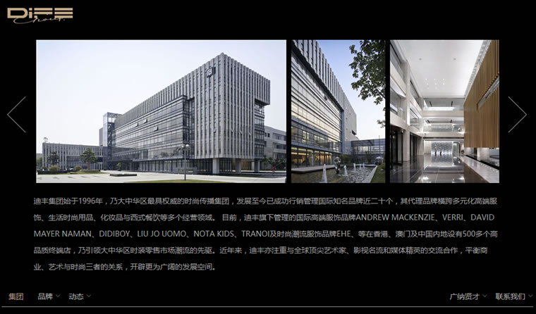 迪豐集團是大中華區(qū)更具權(quán)威的時尚傳播集團,發(fā)展至今已成功行銷管理國際知名品牌近二十個,其代理品牌橫跨多元化高端服飾、生活時尚用品、化妝品與西式餐飲等多個經(jīng)營領(lǐng)域。